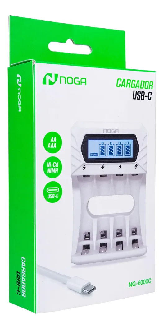 Descubre el Cargador de Pilas Recargables Noga NG-6000C, una opción ideal para mantener tus pilas AA y AAA siempre listas para usar. Con su entrada de 5V y capacidad de carga flexible de 1A a 2A, garantiza un rendimiento eficiente adaptándose a tus necesidades. Equipado con cuatro puertos de carga, permite cargar múltiples pilas simultáneamente, ideal para usuarios activos. Su salida de 1.2V y corriente de 800mA asegura una carga rápida y segura en todo momento. Además, cuenta con un puerto USB-C, lo que facilita su conexión. La pantalla LED integrada te mantendrá informado del progreso de carga, mientras que es compatible con baterías Ni-Cd y Ni-Mh, asegurando versatilidad y conveniencia. No incluye pilas, permitiéndote utilizar tus propias pilas recargables. Con un IVA del 21% y sin impuesto interno, es la opción perfecta para quienes buscan eficiencia y calidad en la carga de pilas.